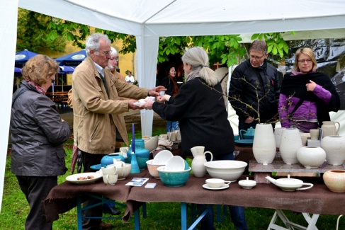Trotz Regen und Böen — es kamen viele Besucher zum jährlichen Kunsthandwerkermarkt am Schloß Erbach. Zum ersten Mal war ich mit meiner Töpferware dabei und erlebte reges Interesse an meiner Keramik. Ich freue mich schon, auch im nächsten Jahr an der besonderen Atmosphäre dieses Marktes wieder teilhaben zu können.