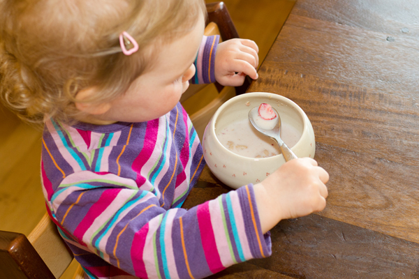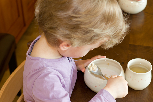 Der nach außen geschwungene Becherrand schmiegt sich ideal an den Mund. Der nach innen gewölbte Schüsselchen-Rand macht das Löffeln leichter. Das Kind hat durch das Eigengewicht des Tonmaterials eine verlässliche Spürwahrnehmung.